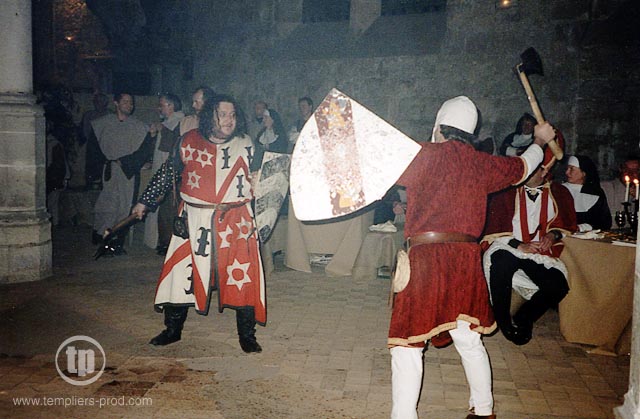 Le repas fut ponctué de sets effectués par des troupes médiévales (fauconniers, acrobates, cracheurs de feu, combats d’épées, etc…). Des bossus et gueux venaient mendier aux tables, pendant qu’un orchestre interprétaient des chants moyenâgeux. Une ambiance mystique mais toujours drôle, grâce à des happenings au ton humoristique.